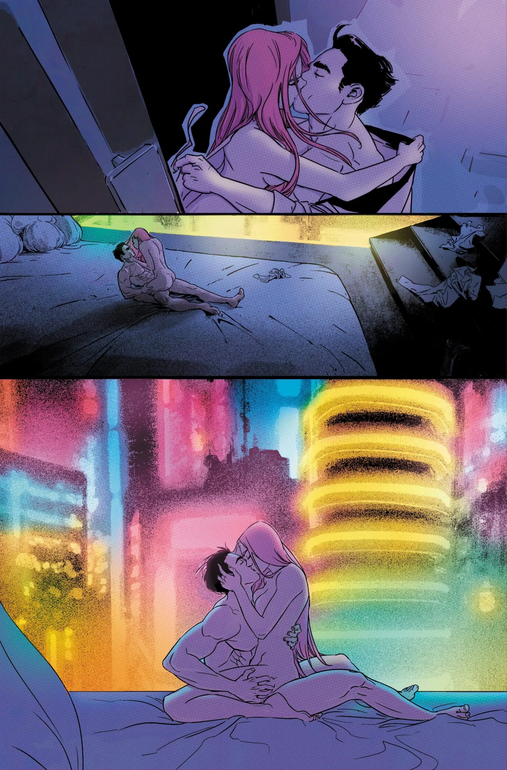 I love the panel where it’s Lacy and Mister in bed and just behind them is a sweeping view of the city. It’s such a gorgeous panel and it’s also a little heartbreaking to see Lacy so close to the outside world she loves but still finding it out of reach.